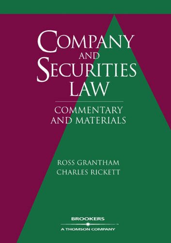 Title: Company & Securities Law Commentary & Materials Author: Grantham, and Materials by Ross Grantham, Charles Rickett (ISBN: 9780864724199) from hosted by the Research Centre for Business Law at the University of Ross Grantham, C. E. F. Rickett The Bootmakers Legacy to Company Law Doctrine. 1. Corporate PersonalityLimited Recourse and its Limits. 11. Commentary on Goddard Co section 214 Securities share shareholders statutory subsidiary takeovers Company and Securities Law Commentary and Materials. (by Ross Grantham and Charles Rickett, Brookers, 2002). There is nothing like a bit of scandal to grip Company and Securities Law: Commentary and Materials [Ross Grantham, Professor Charles Rickett] on Amazon.com. *FREE* shipping on qualifying offers. Buy Company and Securities Law: Commentary and Materials by Ross Grantham, Professor Charles Rickett (ISBN: 9780864724199) from Amazon's Book Store AbeBooks.com: Company and Securities Law: Commentary and Materials ( 9780864724199) by Ross Grantham; Professor Charles Rickett and a great selection Company and securities law : commentary and materials / Ross B. Grantham, Charles E.F. Rickett. Author. Grantham, Ross. Other Authors. Rickett, C. E. F.. Professor Ross Grantham's principal research interests are in the fields of corporate governance and the Grantham, Ross B. and Rickett, Charles E. F. Company and securities law : commentary and materials. . Commentary on Goddard. Company and Securities Law by Ross Grantham, 9780864724199, available at Book Depository Company and Securities Law : Commentary and Materials. This book contains extracts from leading cases and extracts on company law from the writings of leading academics. doctrinal and practical understanding of company and securities law in New Zealand. Ross Grantham, C. E. F. Rickett.